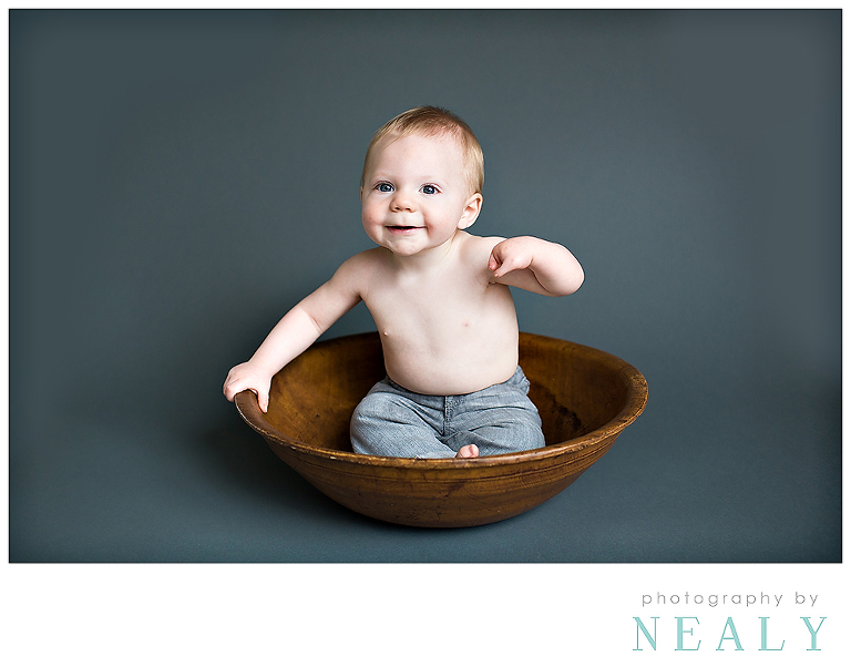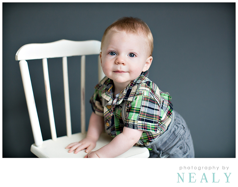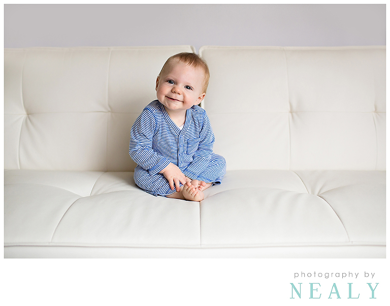 I’ve absolutely loved all of the baby boys that have been to the studio this Spring. I’m really loving lots of white with pops of color for studio pictures lately. His little striped jumper is adorable (it’s from the Gap, I asked his mom). 🙂